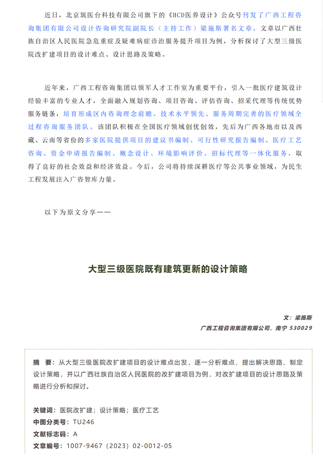 廣咨智庫丨大型三級醫(yī)院既有建筑更新的設計策略